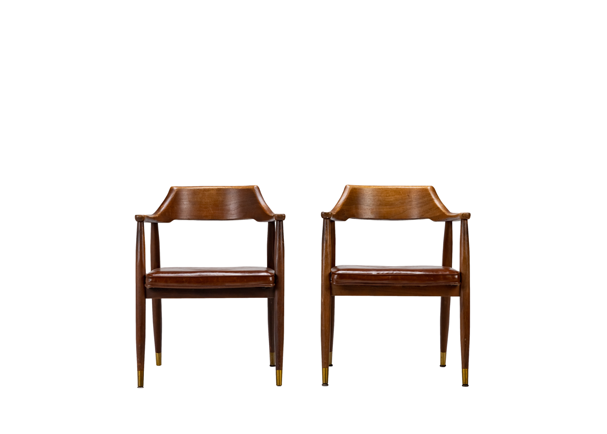 This pair of mid-century beauties will have you sitting pretty! With brass tipped legs and upholstered leather seats, they are a great modern touch for lounges, dinner seating, or panel presentations! Event image by