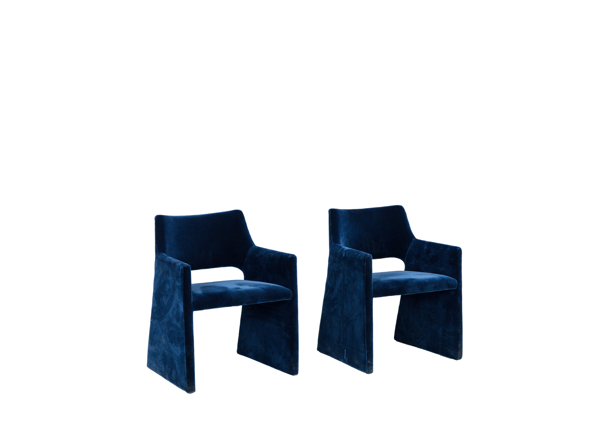 This blue velvet pair is a favorite to look at! These moody chairs have a unique deisng and are as comfortable as they are fun.