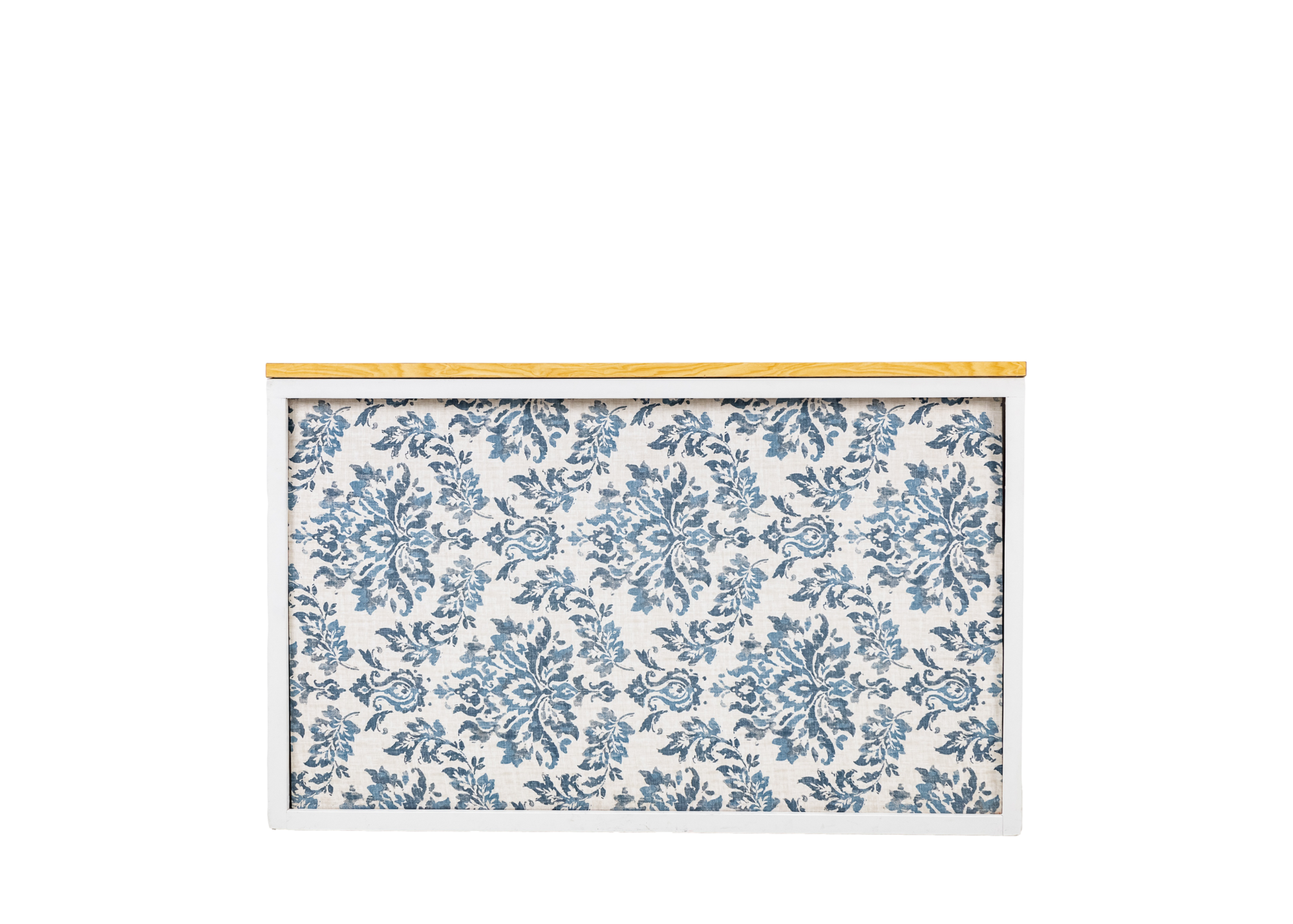Our most customizable piece yet! Our Shadowbox Bar is as functional as it is pretty! The front of this bar features a blue & white fabric insert sure to make a statement at your next event!