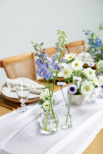Photosynthesis brought the prettiest blooms with hues of greens and blues that highlight the Nuage Designs linen napkins paired with Emerson James beautiful plates with blue accents! She always has the perfect combinations of tabletop pieces to go along with our #pandjpretties!