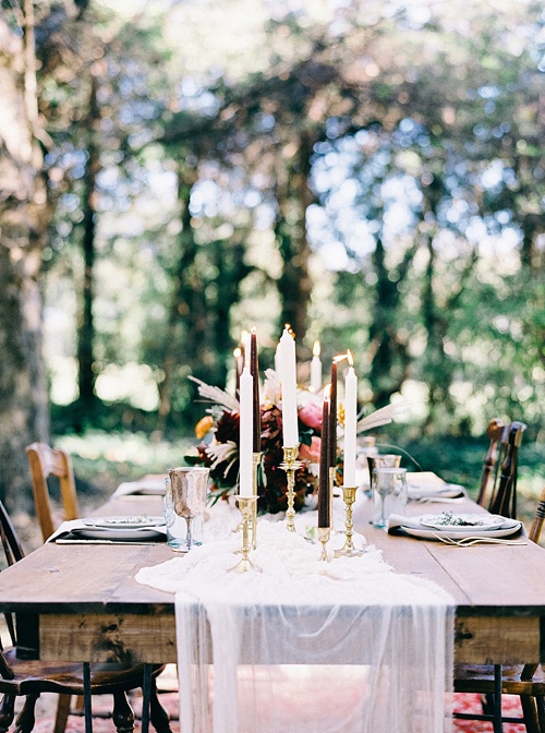 We admit it. We hated to say goodbye to warm weather and summer fun. But we always welcome Fall with open arms especially since it usually brings with it rich tones, terrific textures, changing leaves and comfort food! And so many of those wonderful traits were part of this stunning styled shoot created by our talented friends, Tart Event Co and Nikki Santerre Fine Art Photography! This super romantic Folk-Inspired Fall design is super warm and welcoming so it’s no surprise it was also recently featured on Wedding Sparrow! We’re confident these beautiful images will inspire your Fall event planning!