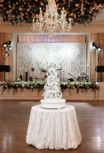 This Full Round Estate Bar covered in Mallory Joyce greenery stole the show under the reception tent! The Modern White Wooden Shelving is always a behind-the-bar favorite!